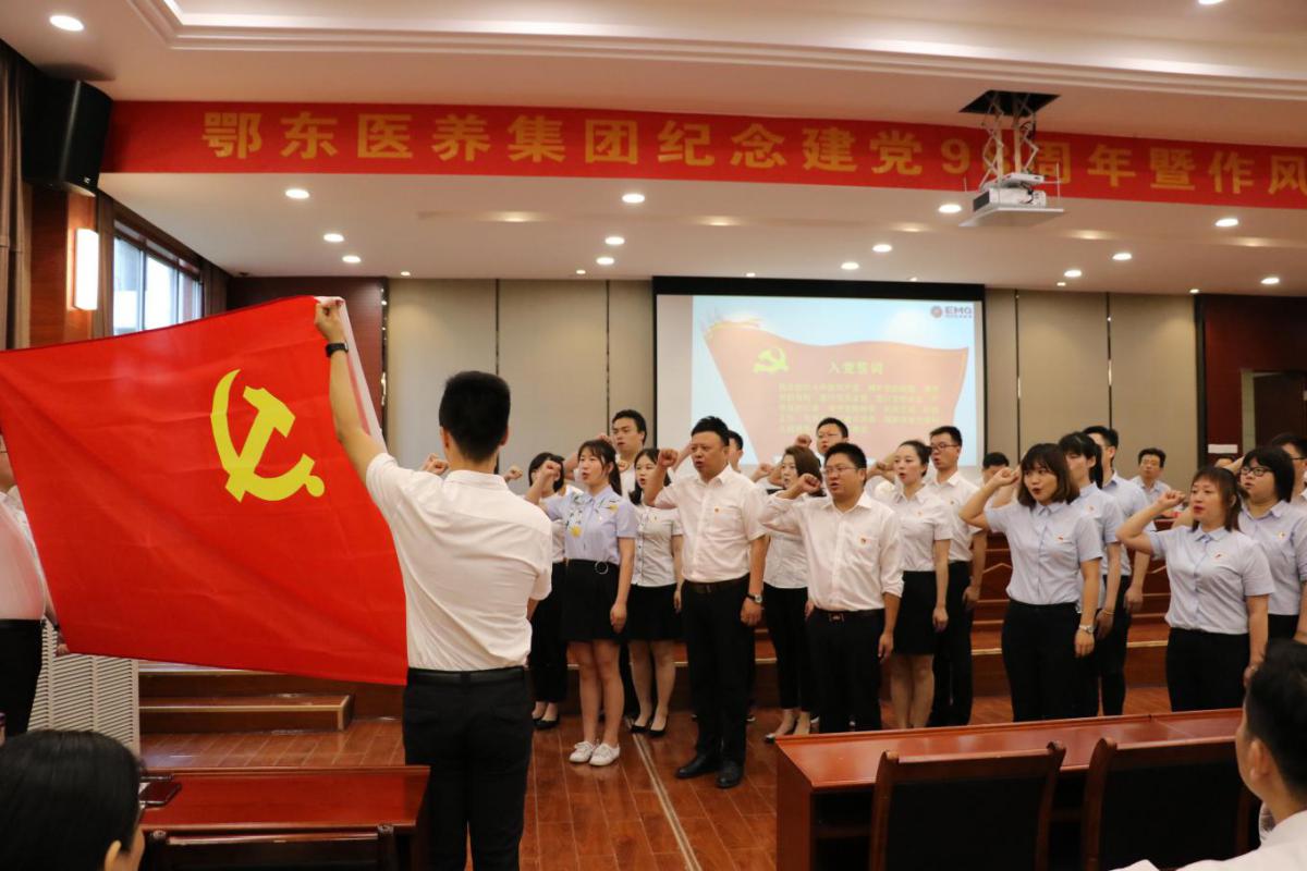 “我志愿加入中國共產(chǎn)黨,擁護黨的綱領(lǐng),遵守黨的章程……”,在莊嚴的入黨宣誓聲中,6月29日上午,醫(yī)養(yǎng)集團拉開了紀念建黨98周年暨作風建設(shè)推進大會的序幕。醫(yī)養(yǎng)集團黨委副書記、董事長、總經(jīng)理李京鶴主持會議。