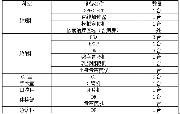 ①市二醫(yī)院新建綜合大樓,擬設(shè)置放射科、CT室等相關(guān)科室,根據(jù)有關(guān)國(guó)家法規(guī)和環(huán)保、衛(wèi)生部門的行業(yè)技術(shù)標(biāo)準(zhǔn),對(duì)新大樓擬安裝使用的射線裝置機(jī)房及非密封工作場(chǎng)所周圍50米范圍進(jìn)行核技術(shù)應(yīng)用項(xiàng)目環(huán)境影響評(píng)價(jià),具體射線裝置清單: