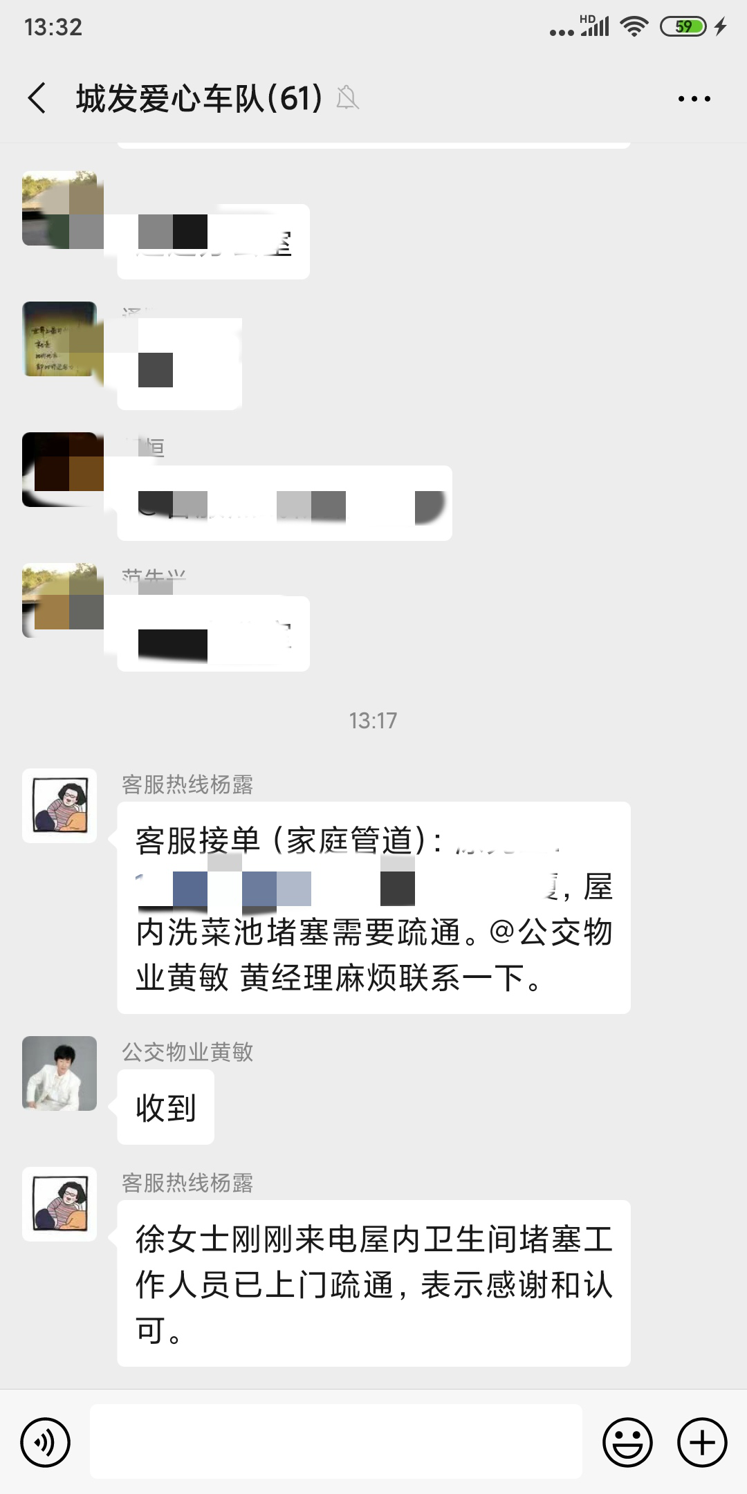 特殊時(shí)期,通成物業(yè)公司義務(wù)為市民疏通管道的場(chǎng)景在不斷上演,“疫情面前,溫暖無處不在,感謝工作人員免費(fèi)提供服務(wù)”“疫情當(dāng)前,服務(wù)隊(duì)免費(fèi)上門疏通管道,為你們點(diǎn)贊!”……類似的短信、表?yè)P(yáng)來電在服務(wù)隊(duì)工作群里比比皆是。