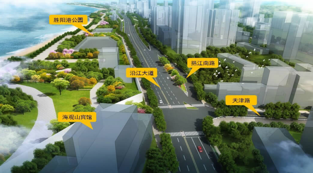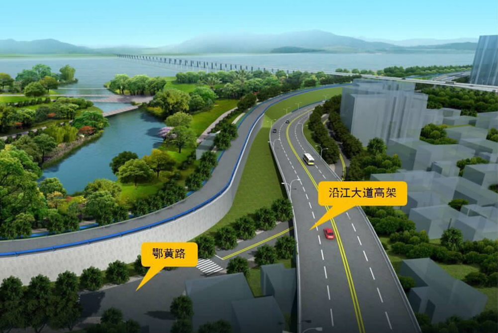 沿江大道全線設(shè)計為雙向六車道,按城市快速路標(biāo)準(zhǔn)進行設(shè)計,這樣城區(qū)的交通壓力將會得到極大緩解,沿江大道將扮演著一個分擔(dān)黃石大道擁堵車流的重要角色。