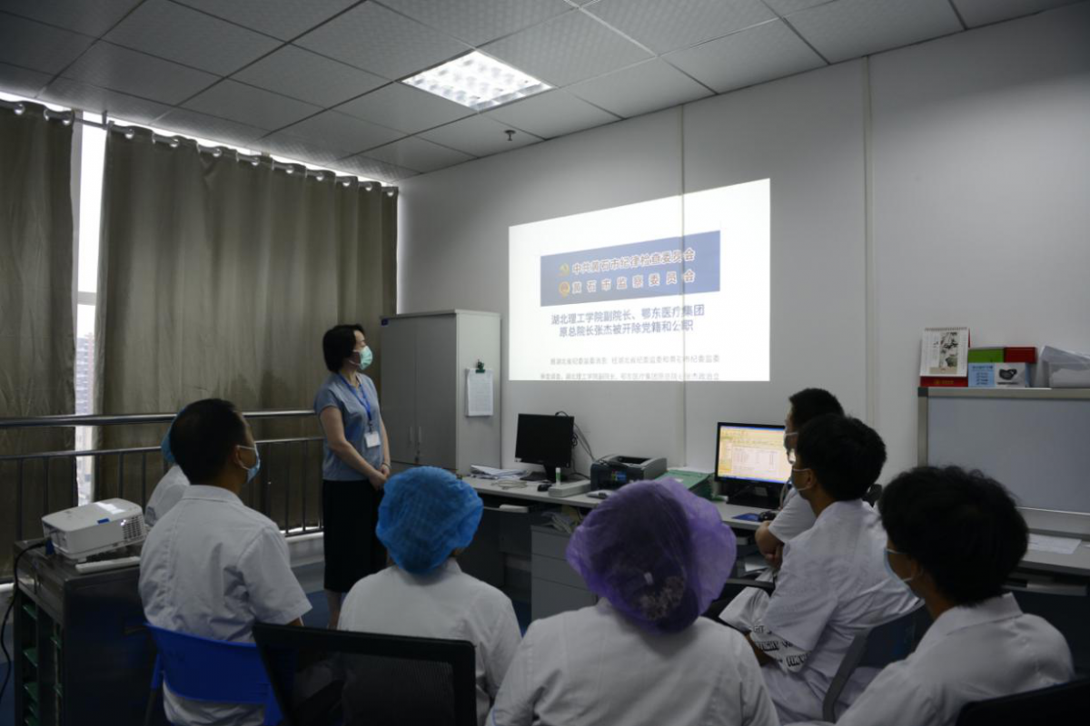 廉政警示教育進(jìn)科室。進(jìn)醫(yī)院臨床科室講解已查處的違紀(jì)違法典型案例,再敲“警示鐘”、繃緊“廉政弦”、注射“免疫針”。