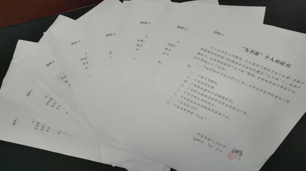 簽訂“九不準(zhǔn)”承諾書(shū)。組織醫(yī)務(wù)人員重學(xué)《加強(qiáng)醫(yī)療衛(wèi)生行風(fēng)建設(shè)“九不準(zhǔn)”》,簽訂“九不準(zhǔn)”個(gè)人承諾書(shū),遏制不正之風(fēng),加強(qiáng)行風(fēng)建設(shè)。