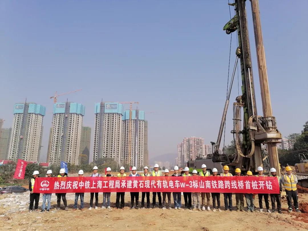7日上午9時(shí),在開(kāi)發(fā)區(qū)·鐵山區(qū)百花南路舒家咀路段,已完成平整的土地上,高高的旋挖鉆緩緩鉆向地面,打出山南鐵路跨線橋首根樁基首鉆,這也是黃石現(xiàn)代有軌電車(chē)項(xiàng)目建設(shè)中首個(gè)橋開(kāi)鉆的第一根樁。