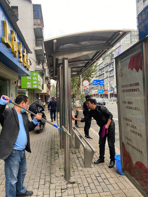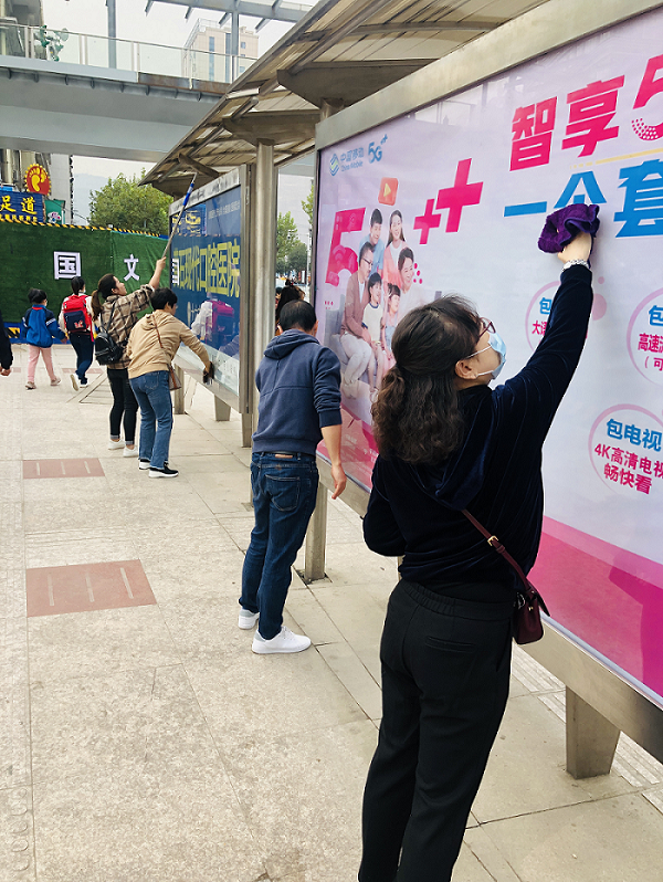 披著星辰,踏著晨曦,各黨支部干部職工拿著抹布、水桶、小鏟子等工具出現(xiàn)在各公交站臺,開始熱火朝天的義務(wù)勞動。大家抹凈站牌站桿、廣告燈箱、座椅上的灰塵,清除頑固黑漬和違規(guī)張貼的小廣告,讓公交站臺環(huán)境面貌煥然一新。