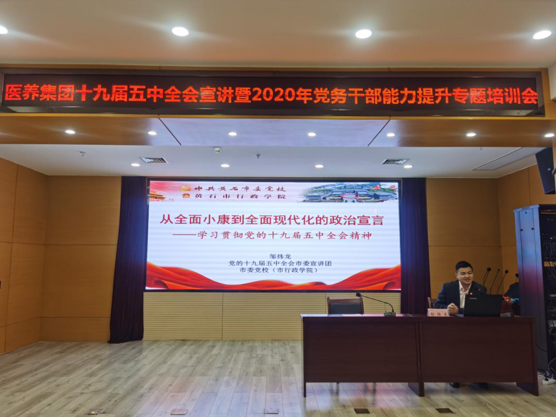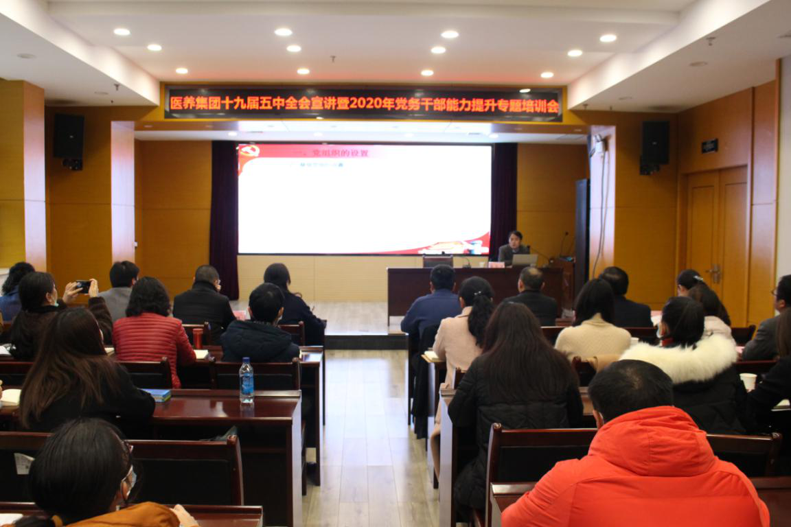 為深入學(xué)習(xí)宣傳貫徹黨的十九屆五中全會精神,11月28日,醫(yī)養(yǎng)集團(tuán)組織召開十九屆五中全會精神宣講暨黨務(wù)干部能力提升專題培訓(xùn)會。醫(yī)養(yǎng)集團(tuán)領(lǐng)導(dǎo)班子及直屬單位領(lǐng)導(dǎo)班子、機(jī)關(guān)部室負(fù)責(zé)人、直屬各單位黨政辦負(fù)責(zé)人、基層支部書記、黨務(wù)干部參加培訓(xùn)。