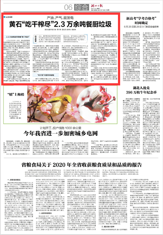 這一方面寄希望于餐飲業(yè)復(fù)蘇;另一方面,黃石市即將實施垃圾分類,有機(jī)垃圾、家庭廚余垃圾也會逐步運到廠里處理。