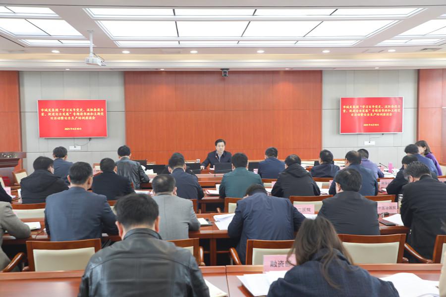 2021年4月10日上午,城發(fā)集團(tuán)“學(xué)習(xí)百年黨史、汲取奮進(jìn)力量、促進(jìn)安全發(fā)展”專(zhuān)題讀書(shū)班和主題黨日活動(dòng)暨安全生產(chǎn)培訓(xùn)座談會(huì)在五樓會(huì)議室舉行,集團(tuán)領(lǐng)導(dǎo)班子、直屬二級(jí)單位及部分三級(jí)單位負(fù)責(zé)人、機(jī)關(guān)支部全體黨員參加會(huì)議。