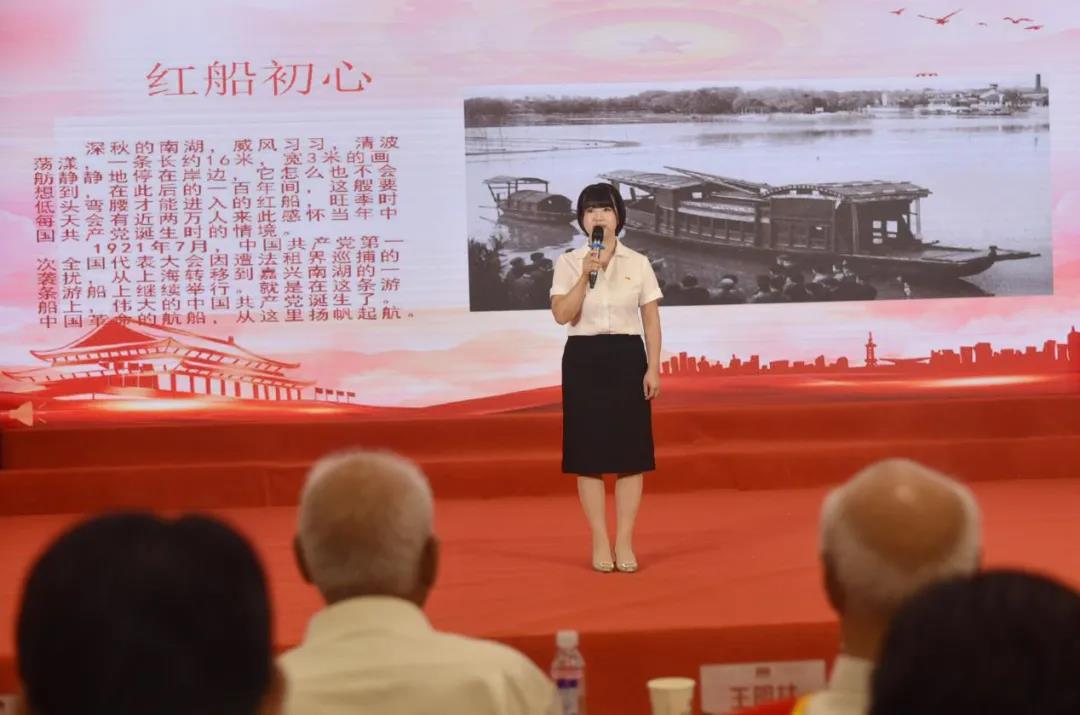 來(lái)自城發(fā)檢測(cè)公司的劉桂則,通過(guò)講述南湖紅船與共產(chǎn)黨的故事,分享《建黨偉業(yè)》電影節(jié)選,將大會(huì)帶回中國(guó)共產(chǎn)黨成立之初的壯闊歷史中,共同感悟中國(guó)共產(chǎn)黨的百年奮斗之路和城發(fā)人推進(jìn)綠色發(fā)展的初心使命。